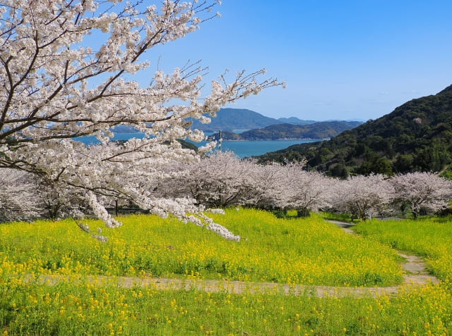 桜と海のコントラストがとても美しく、ドライブの途中に立ち寄るのにぴったりです。